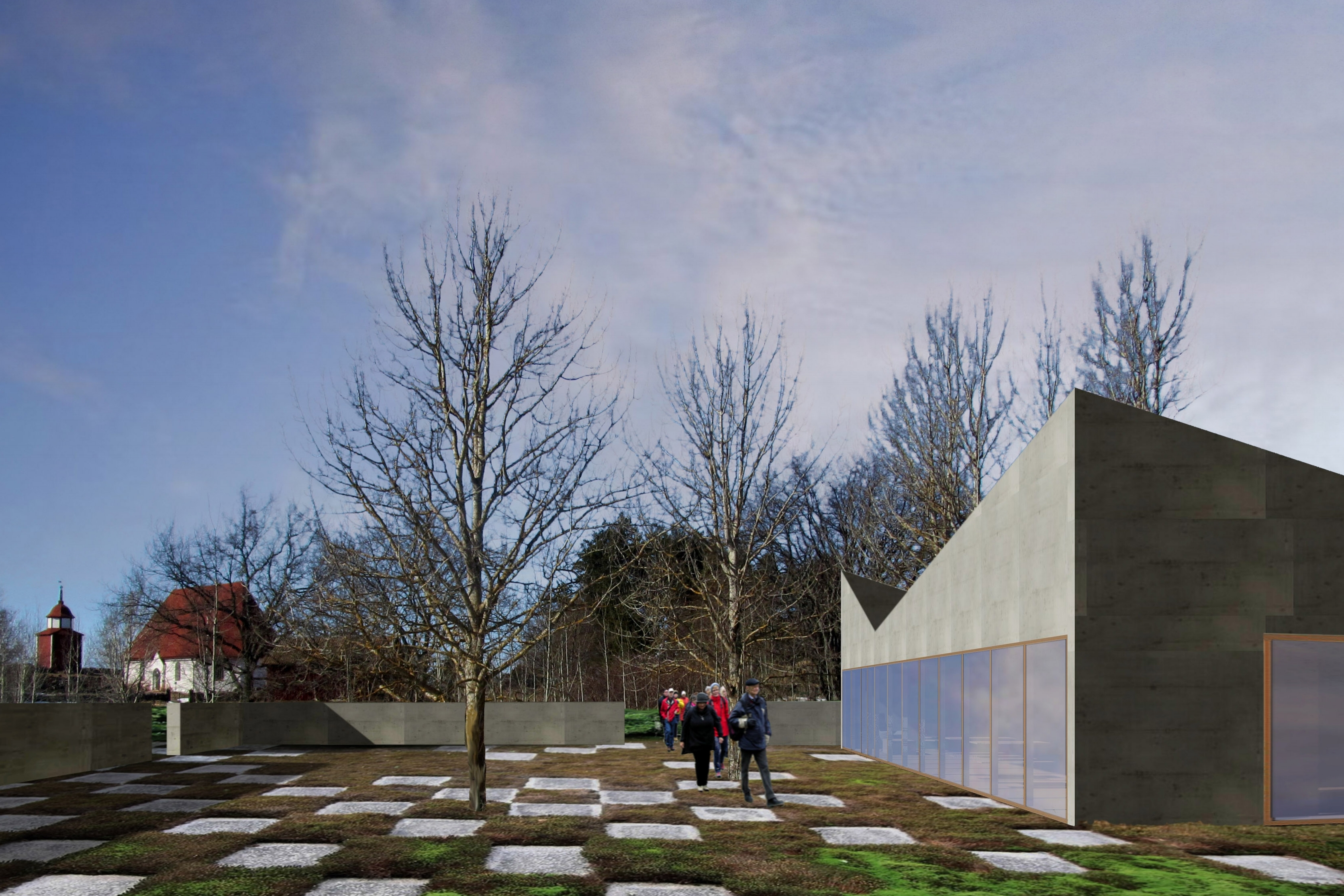 Pilgrimscentrum i anslutning till lämningarna av franciskanerklostret vid St:a Anna Kyrka på Kökar, Åland.